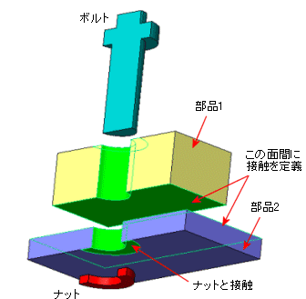 - 次に示されるように、干渉を回避するために接触条件の定義が必要な場合があります:
