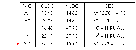 穴テーブルのタグ シーケンス(アルファベットか数字)を選択します。