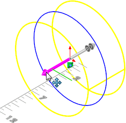 希望の押し出しの深さまで、(ハンドルの変わりに)ポインタをドラッグすることもできます。 ハンドルをクリックし、次にポインターをどちらかの方向にドラッグします。 次の例では、ピンク色のハンドルはアクティブであり、グレーのハンドルは非アクティブです。