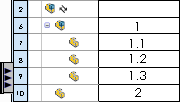 BOM 부품의 들여쓰기된 표시에서 BOM 어셈블리 구조 열의 첫 번째 하위 어셈블리