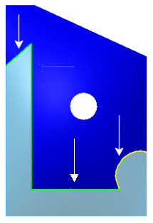 그림에 표시된 모서리선들을 선택하고, 옵션 아래에서 안쪽 모서리선을 선택합니다. 그림에 표시된 모서리선들을 선택하고, 옵션 아래에서 바깥쪽 모서리선을 선택합니다. 거리 15%로 지정합니다. 모든 모서리선을 선택하여 안쪽 모서리선과 바깥쪽 모서리선을 모두 보존할 수 있습니다.