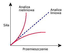 - Wynikowe przemieszczenia są na tyle małe, że można pominąć zmianę sztywności spowodowaną obciążeniem.