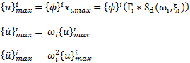 Niech Sd (ωI, ξI), Sv (ωI, ξI) i Sa (ωI, ξI) będą wartościami spektrów reakcji wejściowych odpowiednio dla przemieszczenia, pseudoprędkości i pseudoprzyspieszenia. Ponieważ każdy mod może być idealizowany jako system z pojedynczym stopniem swobody, maksymalne reakcje ponad czas trwania wzbudzenia w postaci współrzędnych modalnych są uzyskane z wartości spektrów reakcji wejściowych: