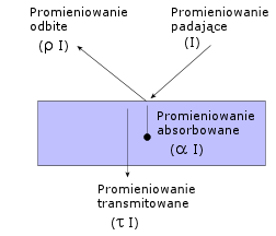Przepuszczalność właściwa (τ) Część padającego promieniowania przenikająca przez powierzchnię.