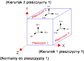Gdzie: X jest Kierunkiem 1 Płaszczyzny 1, Y jest Kierunkiem 2 Płaszczyzny 1, a Z jest Normalna do Płaszczyzny 1.