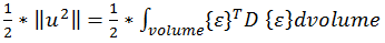 , gdzie {ε} jest wektorem odkształcenia elementu, a D to macierz sztywności materiału.