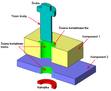 Wybrać ściany otworu z komponentu stykającego się z gwintami.