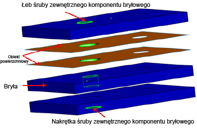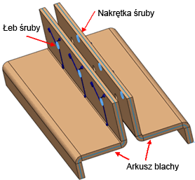 Wybrać krawędź, aby zdefiniować lokalizację odpowiednio łba śruby i nakrętki śruby.