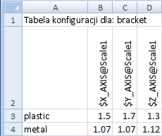 W menedżerze właściwości PropertyManager Skala, w części Konfiguracje określić konfiguracje, do których mają zastosowanie współczynniki skalowania.