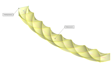 Przykład Idź za ścieżkąi pierwszą krzywą prowadzącą (wybrana jedna krzywa prowadząca) |