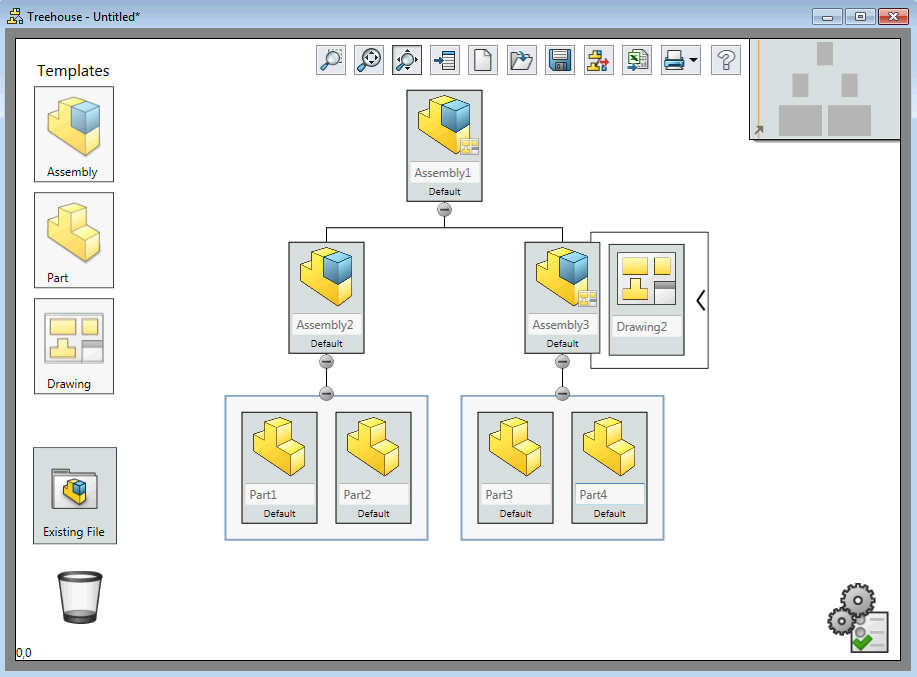 Com o Treehouse, você pode configurar a hierarquia de montagem do SOLIDWORKS em uma interface do usuário gráfica antes de começar a desenvolver seus modelos no SOLIDWORKS. Além disso, você pode usá-lo para adicionar uma hierarquia a uma estrutura de arquivo existente.