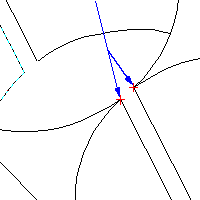 Para verificar se há vértices de faca, selecione Ângulos agudos e Vértices de faca, depois defina o Ângulo da aresta. Se houver duas arestas adjacentes que se interceptam em um ângulo abaixo do valor especificado, o vértice entre elas é um vértice de faca.