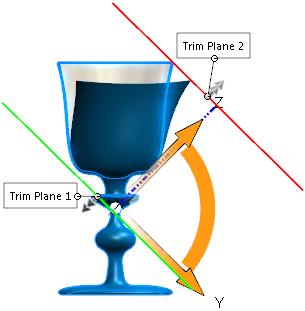 Установите степень заострения путем перемещения плоскостей отсечения или триады. Для регулировки заострения поместите указатель на кромку плоскости отсечения, чтобы он принял форму , затем перетащите плоскость.