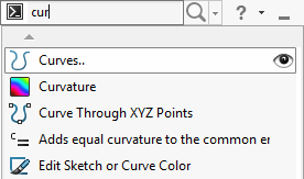 Если запустить команду Кривая через точки XYZ из списка результатов, данная команда отобразится в верхней части списка при следующем поиске с помощью кри.