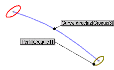 Los planos de croquis de todas las secciones intermedias son normales a la línea constructiva. La línea constructiva puede ser una curva croquizada, una arista del modelo o una curva.