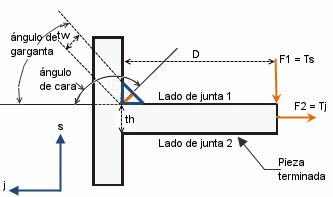 Diagrama de cuerpo libre en una garganta de soldadura |