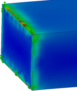 Cuando la herramienta de diagnóstico Zona activa de tensión detecta las regiones del modelo que presentan gradientes de tensión alta irregulares, puede aplicar refinamientos de malla locales a las aristas geométricas seleccionadas de las regiones con zonas activas para comprobar si estas aristas nítidas causan las singularidades de tensión.