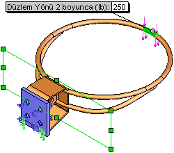 Bir yük, fikstür veya başka bir kontrol eklediğinizde, yazılım modele semboller ekler. Bu kontrolün PropertyManager'ına erişmek için bu sembollere çift tıklayabilirsiniz. Aşağıdaki resim bir elastik destek bağlantı elemanının sembolünü vurgulamaktadır. Resim ayrıca bir kuvvet ve cıvata bağlantı elemanının sembollerini göstermektedir.