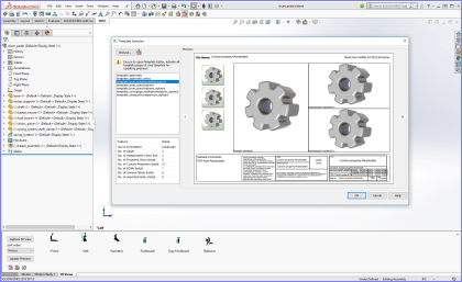 テンプレートを選択した後、PropertyManager で選択を行うと、PDF ドキュメントのプレビューが大きく表示されるため、選択内容の影響がわかります。