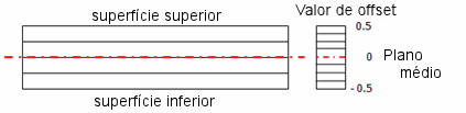Posiciona a parte da pilha definida por um valor de offset, que é uma fração da espessura total, medido da superfície média até a superfície de referência. A figura representa os valores de offset positivos e negativos.