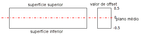 Posiciona a malha em uma superfície de referência definida por um valor de offset que é uma fração da espessura total. A imagem mostra o significado dos valores de offset positivos e negativos.