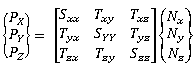 Tensão de cisalhamento na direção Y agindo no plano normal para a direção X da geometria de referência selecionada Para os componentes de tensão de cisalhamento, o primeiro índice indica a direção da normal à superfície, e o segundo índice indica direção do componente de tensão de cisalhamento.