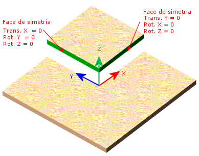Para modelos de casca, a simetria exige que as faces que coincidam com planos de simetria sejam impedidas de se moverem na direção normal e de girarem em torno das outras duas direções ortogonais. Os planos de simetria devem ser ortogonais uns aos outros.