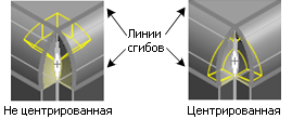 Расположить по центру линий сгиба