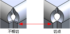 当您选择 在折弯线上居中时使边角释放槽与内折弯线相切。