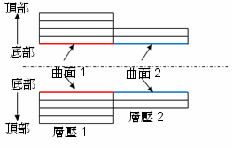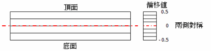 定位偏移值定義的堆疊部分,該偏移值是從中間曲面到參考曲面測得總厚度的一部分。 下圖描繪了負偏移值與正偏移值。