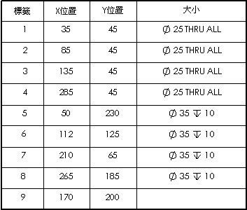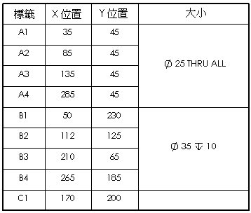 顯示透過異型孔精靈工具產生的鑽孔中,與該精靈的鑽孔規格具備相同大小的鑽孔,例如 A 或 #40。