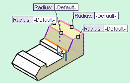如果您在 PropertyManager 中選擇了顯示標註,則在圖面中標註會附加到彎折和裂口邊線。 您可以使用標註來變更彎折半徑和裂口縫隙。