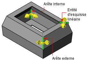 • En combinant des arêtes du modèle et des entités d'esquisse linéaires uniques
