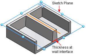 抜き勾配を追加する場合、スケッチ平面か、または壁インターフェースで厚さを設定することができます。 次のいずれかのオプションを選択します: