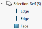 選択セットの作成 選択セットを保存するためのオプションの場所は、部品で作業しているかアセンブリで作業しているかによって異なります。 部品の場合、選択の保存(Save Selection)が状況依存のショートカット メニューの上部および フィーチャー の下にあります。 アセンブリの場合、選択の保存(Save Selection)が 構成部品 の下にもあります。 選択の保存(Save Selection)をどこで選択するかによって、保存した選択の内容が FeatureManager デザイン ツリーでどのように表示されるかが決まります。 メニューの上部の場合 フィーチャー の場合 構成部品 の場合 選択セットを作成するには: モデル内のアイテムを選択します。 右クリックし、選択の保存(Save Selection)をクリックします。その選択セットを含む 選択セット フォルダが FeatureManager デザイン ツリーに表示されます。デフォルトでは、選択セットの名前の形式は次のようになります。 Selection-Setn(nn) ここで、 n は、作成順序を示します。 新しい選択セットを追加すると、この数が増分します。 nn は、選択セット内のアイテム数を示します。