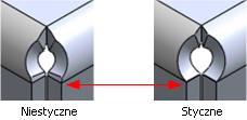 Tworzy zaokrąglenie, które rozpoczyna się od wierzchołka w obszarze zgięcia i kołnierza i jest styczne do dwóch kołnierzy. Opcja dostępna tylko dla narożników z 3 zgięciami. |
