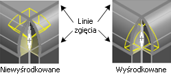 Tworzy podcięcie narożnika styczne do linii zagięcia po wybraniu Wyśrodkowane na liniach zgięcia.