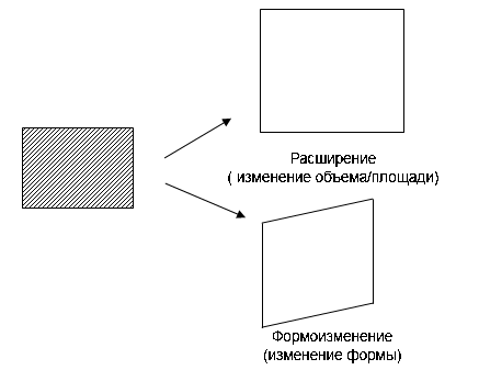 Рисунок иллюстрирует разницу между расширением и формоизменением при нагрузке 2D (двухмерной) модели.