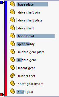 过滤清单 您可以按文字和按零部件显示/隐藏状态过滤“装配体可视化”列表。 要按文字过滤列表,请在装配体可视化选项卡 顶部的过滤器字符段 中键入文字。 只有名称包含该文字的那些零部件才会在清单和图形区域中显示。 未过滤 已过滤 在过滤器字符段中单击 消除过滤器。 要过滤掉处于隐藏状态的零部件,请单击向下箭头,然后单击过滤隐藏的零部件。 处于隐藏状态的零部件将从清单中消失。 由于这些零部件在图形区域中已经隐藏,因此图形区域不会有变化。 未过滤 已过滤 单击向下箭头并清除过滤隐藏的零部件,可将隐藏的零部件恢复到清单中。 父主题操纵列表外观 查看平坦或嵌套清单 显示数值分栏 使用退回控制棒隐藏零部件 更改精度 保存为其它文件类型