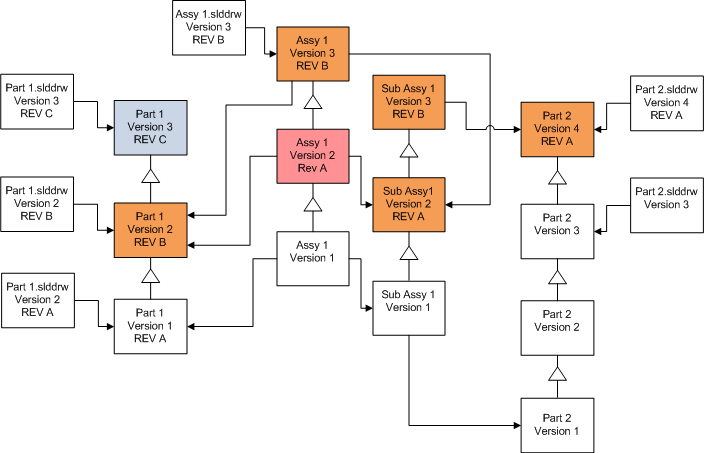在参考引用的版本串流中,文件版本升级工具还升级最新零件,如蓝色