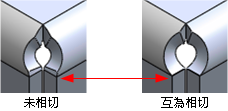 在三個彎折相會的單一共同點上產生角落離隙。 角落離隙會套用於彎折線的共同相交點。 模型必須有三個彎折,而且彎折線僅相會於一點。