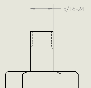 螺紋線標註要在來源零件或組合件的「裝飾螺紋線」特徵中定義。 您可以使用智慧型尺寸工具將標注加入外螺紋的側視圖或剖面視圖。