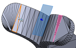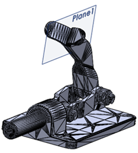 ファセット、フィン、または頂点を選択することで、グラフィック メッシュ ボディまたはメッシュ BREP ボディに座標軸、参照軸と参照平面を追加できます。 ファセットは平面参照、ファセット フィンは直線エッジ参照、ファセット頂点は点参照として使用します。
