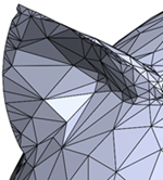 - 同じグラフィック メッシュ ボディである piggy_bank.STL を使用して、モデルの左の耳にズームします。