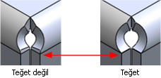 Büküm çizgileri üzerinde ortalanmış öğesi seçildiğinde, köşe kabartmasını iç büküm kenarlarına teğet hale getirir.
