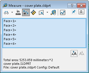 開啟「測量歷程記錄」對話方塊,您可在此檢視 SOLIDWORKS 目前工作階段中進行的所有量測。 |