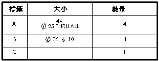 您可以選取或清除此選項來切換鑽孔表格中的大小顯示。