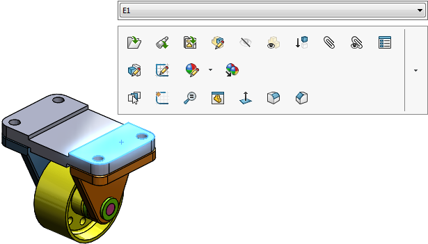 當您在圖面或 FeatureManager(特徵管理員)中選擇項次時,文意感應工具列會出現並提供對該情境通常執行動作的存取。