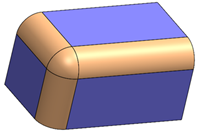 範例:沿相切面進行 從一個方塊開始,套用圓角至如圖所示的邊線。 選擇一條邊線來產生圓角。 選擇來產生圓角的邊線 相切面交線 結果:沿相切面進行核取方塊被清除的圓角範例 結果:沿相切面進行核取方塊被選擇的圓角範例 上層主題固定大小的圓角 範例:偏移圓角預覽 範例:溢出處理方式
