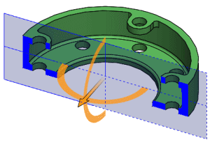 如果您旋轉剖切平面及保留參考基準面的選擇,檢視偏移仍然垂直於基準面: